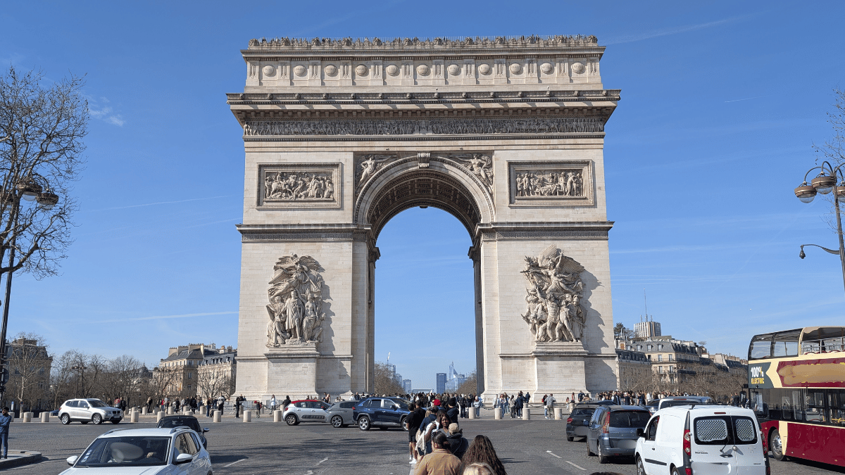 - 凱旋門は、パリの象徴的なランドマークです。凱旋門の下までは無料で行くことができ、有料で展望台に上ることができます。地上からは、展望台に上っている人々の姿も見えるため、足元からでもその壮大さを感じられます。
